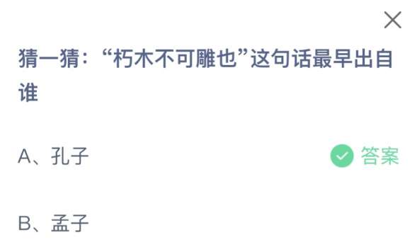 “朽木不可雕也”这句话最早出自谁?支付宝蚂蚁庄园小课堂今日的问题更新了,很多小伙伴还在为了答案而着急吗。接下来创意小编为大家带来2023年10月19日支付宝蚂蚁庄园今日最新问题答案介绍,不知道的小伙伴快来看看吧。