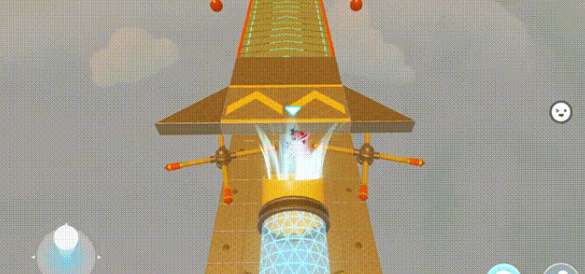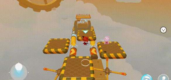 3、通过加速带区域后,从弹簧垫处直接弹到下一个处于中间位置的管道,从管道口出来后使用降落伞技能来到右边的移动平台;