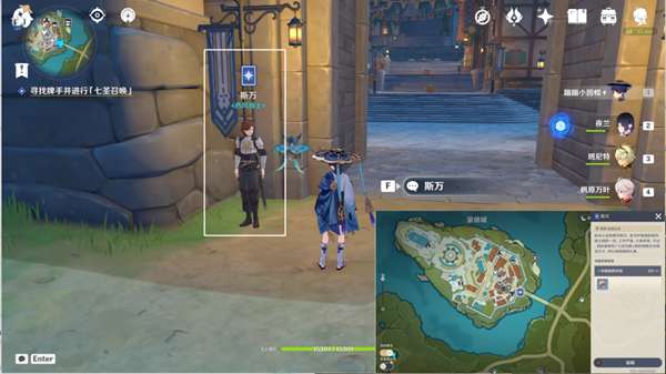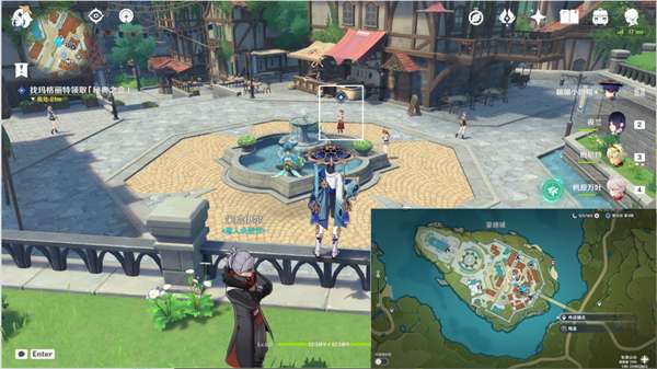 3、传送到蒙德城中,往东南方向走,找玛格丽特。
