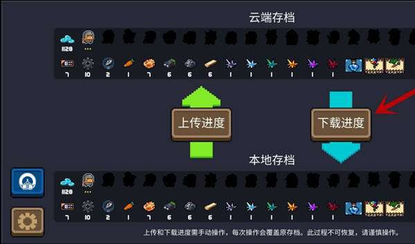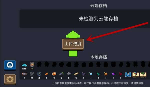 4、再打开旧手机上的元气骑士,在云端存档中点击上传进度。
