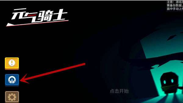 1、在新手机上打开元气骑士,在登录页面点击左边的蓝色按钮。