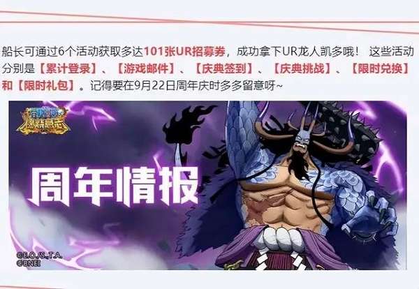 航海王燃烧意志即将上线四周年庆系列活动,活动奖励十分丰富,很多玩家都想要知道航海王燃烧意志4周年庆活动有哪些,小编为大家带来航海王燃烧意志4周年庆活动一览,感兴趣的小伙伴不要错了,一起来看看吧,希望能帮助到大家。