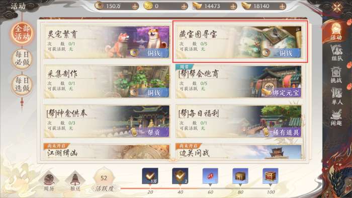 少侠可以点击【活动】-【藏宝图寻宝】查看活动玩法。