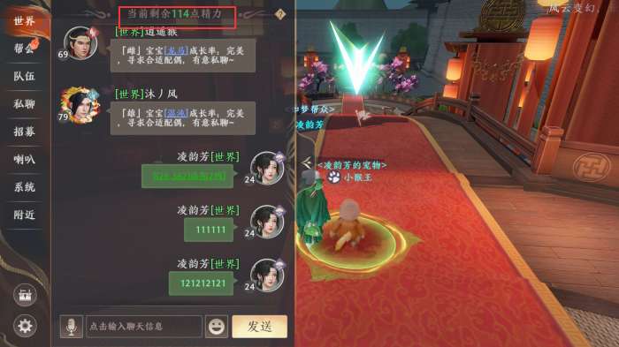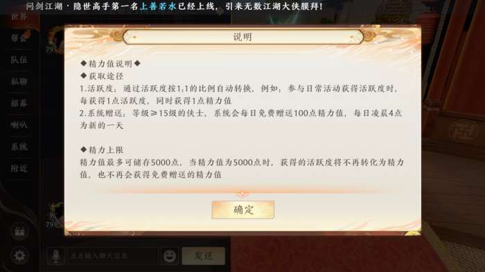 在世界聊天需要消耗【精力】每次发言需要消耗5点