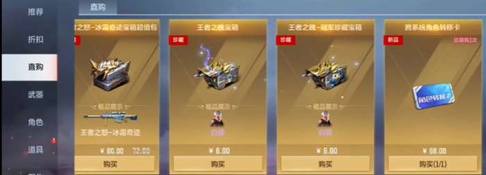 1、玩家想要账号从安卓转移到苹果系统首先需要打开游戏点开商城找到点击直购找到【跨角色转移卡】;