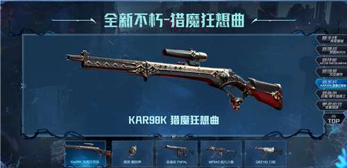 427新版本将上新暗黑主题系列军备,全新不朽级武器「KAR98K猎魔狂想曲」奏响华丽暗黑乐章,黑色枪身之上排布着繁复花纹,玫瑰色暗金修饰更显华贵典雅,与修长的枪身线条完美结合,使人一秒穿越到遥远的中世纪欧洲。