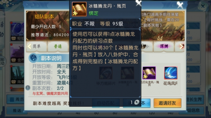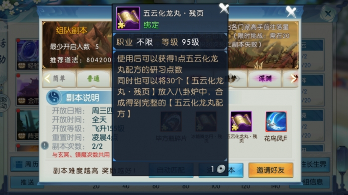 如果有高道法玩家带自然是最好的,如果打不过最高难度或者没法5星,也不要勉强,打自己能打的难度就行,法宝和丹方早晚都能得到。