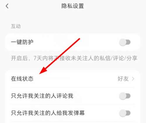 3、在隐私设置中有个【在线状态】选项,我们点击它。