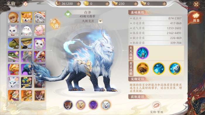 内功型宠物灵气资质较高,善于内功攻击,属于输出型宠物。