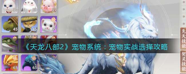 今天小编给大家带来了《天龙八部2》宠物系统宠物实战选择攻略,天龙江湖中有各种宠物,随着等级的提升,各位少侠可以获得的宠物种类越来越多!这些宠物不仅外表各异,或可爱或霸气,在属性上也各有不同。那么如何选择一只最适合自己的宠物与自己同游江湖呢?来看看接下来小编介绍吧!