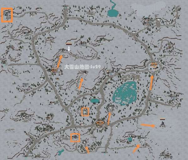 1、玩家可以按照上图的标记来快速的了解大雪山地图。