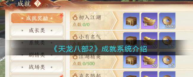 以上就是创意手游小编整理带来的《天龙八部2》成就系统介绍,更多精彩内容,请点击关注创意手游网!