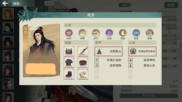 4、甲陆游,装备不重要,随便给就行,主要作用就是用武学清BOSS的增益和心法给BOSS破防。
