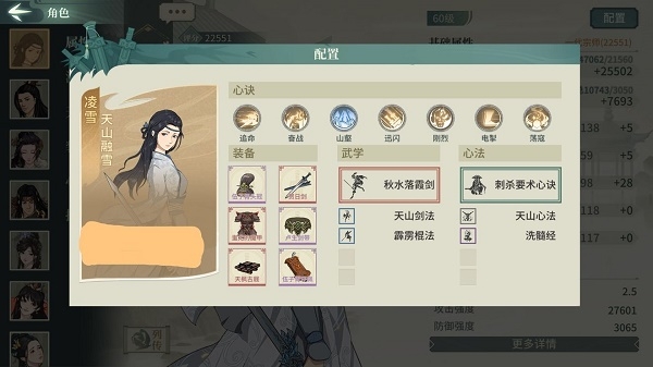 2、很平民的凌雪,秋水剑法在江湖商店可以买,天山古剑、太极剑法,也都可以用。