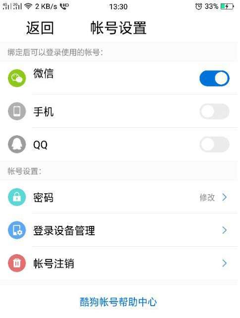 酷狗大字版怎么解绑微信?