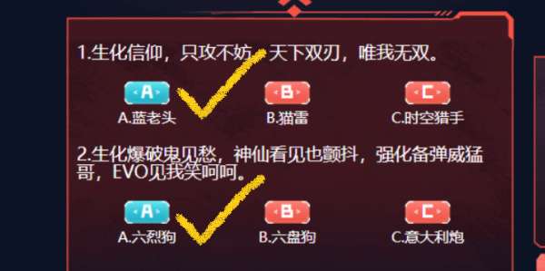 玩家在活动期间每天前往活动页面都会看到两个生化题目。