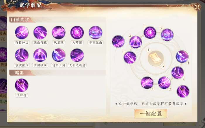 主动技能可在武学装配界面进行装配调整。