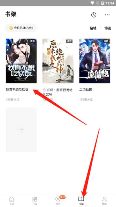 1、首先我们打开手机中的番茄小说APP,然后点击下方的【书架】选项,然后选一本想看的书。