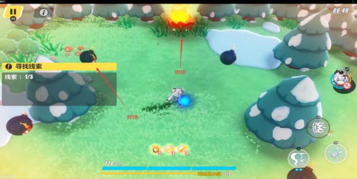 ✦ 其他提示:对爆弹使用攻击会导致其在数秒后爆炸,可以先利用「移动」将爆弹推动到树妖周围再用攻击引爆。