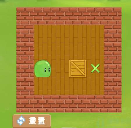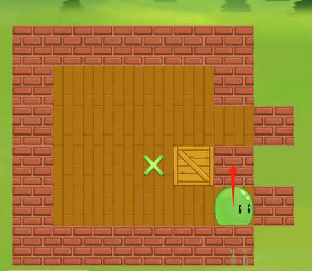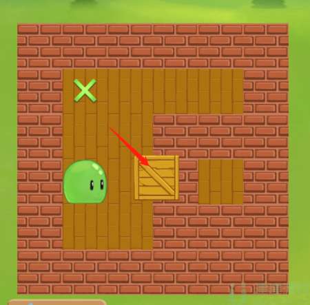 2、然后进入到下一个部分,这一关玩家需要先将箱子右边上方的一块砖推开,然后再将箱子下方的一块装推开,然后再将箱子后面的砖往上推,最后将箱子推到绿色标记处就可以了。