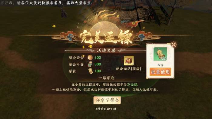 “劫镖”成功的少侠会得到对应镖车的收益,每日收益次数上限为3次。