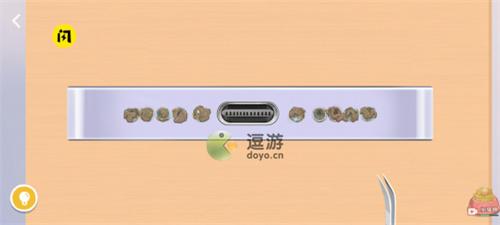 最后,我们会看到道具栏中的最后一个道具——吸尘器。这个道具可以吸走充电插孔中的残余灰尘和杂质。使用吸尘器,将充电插孔中的最后一点灰尘吸走。