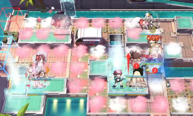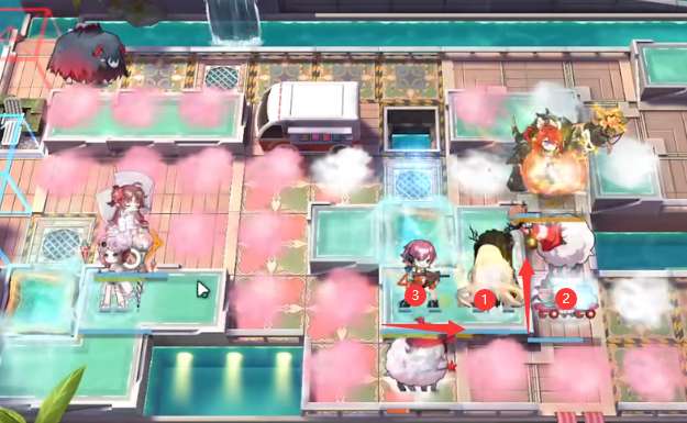 如图所示部署桃金娘 → 澄闪 → 汽水瓶,开澄闪技能打汽水瓶。