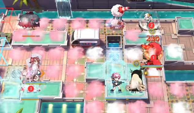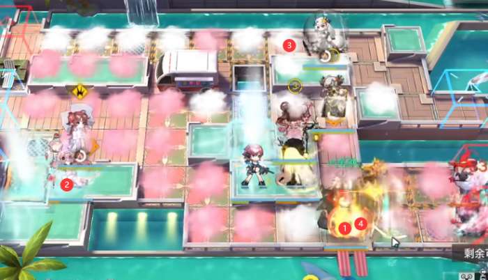 最后部署史尔特尔在如图位置,澄闪技能好了就开,泥岩面前粉了就下汽水瓶改白。右下出羊开史尔特尔技能。