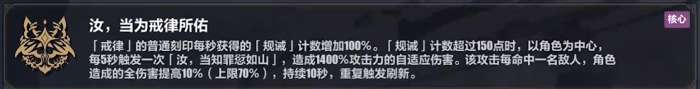 戒律二:普攻、回能/减伤、降计数易伤,核心解锁最优。必杀加成不要选,因为羽兔频繁使用武器技,选了的话戒律计数是叠不上去的。