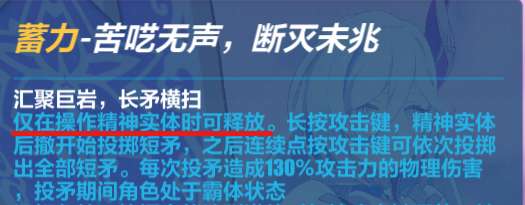 需要注意,羽兔普攻流玩法是操作本体进行输出,而非精神实体,因此无法触发蓄力攻击。所以与蓄力攻击为触发条件、以及蓄力攻击加成的圣痕都吃不到。