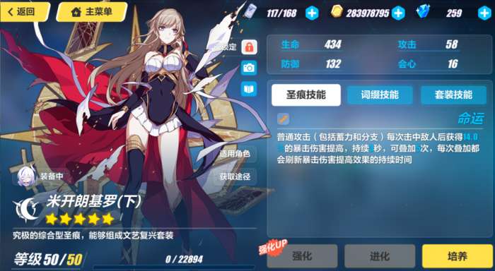 圣痕:圣痕方面优先毕业装亚历山德拉套,其次选择以普攻加成和暴伤加成为主的圣痕,建议以爱莉、狄更斯或卡夫卡两件套搭配米开朗基罗下使用。