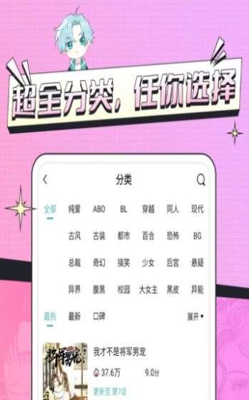 免耽漫画下载一款专为漫画迷们提供免费耽美漫画的手机平台。如果你是一个喜欢看耽美漫画的用户那么这个软件你一定不能错过,这里为用户网罗了全网最新最热门的耽美漫画资源,所有的漫画都进行了分类,只需要简单的点击你就可以轻松享受耽美漫画带来的不同乐趣,想要试试的话就来下载这款软件吧。