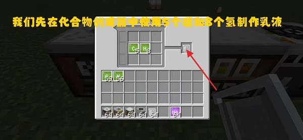 3、打开工作台,在中间放上氢气有,在上面放绳子,下面放染料,左右两边放满乳液。