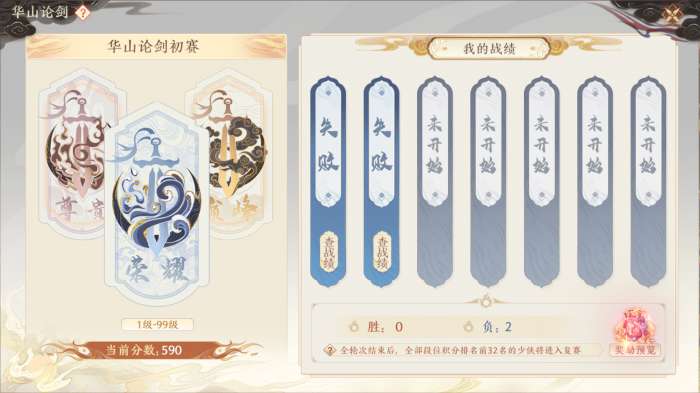 进入休息室等待华山论剑开启。右侧会有倒计时显示,首先开启的是初赛。
