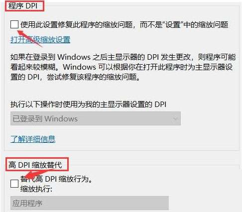 5、最后勾选程序DPI下的缩放问题以及缩放替代按钮即可。