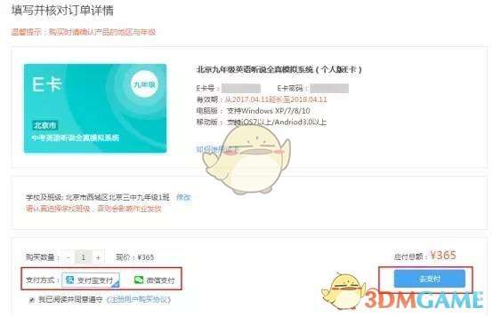 5、填写并核对好订单详情后,使用支付宝或微信在线支付;