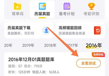 1、首先打开考试蚁,切换到历届真题栏目,点击全套测试;