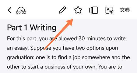 2、进入真题测试页面,点击顶部的星星按钮即可收藏;