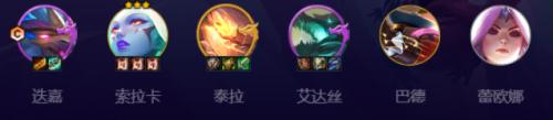 阵容组成:奥瑞利安·索尔、斯卡尔·斯图尔特、李青、尼菈、艾达丝、赛芬、巴德、亚索