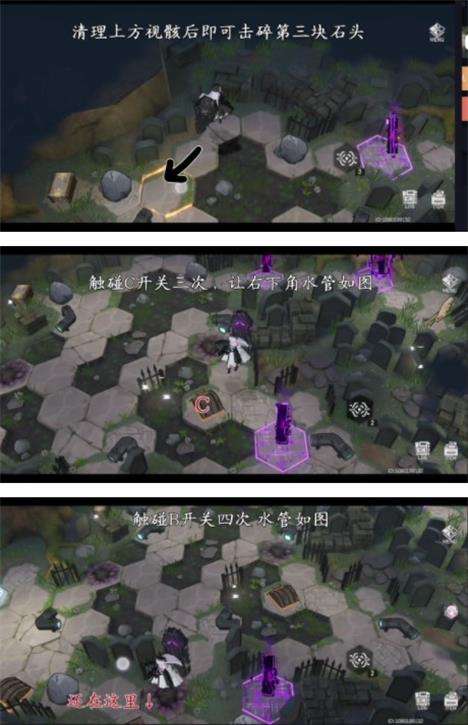 2.下方多余的两个石块击碎后开启开关更方便,但是没有实际作用,所以图中没有