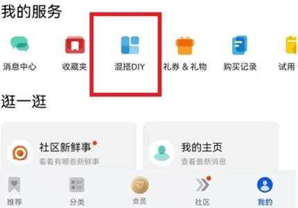 4、进入【混搭DIY】页面后点击图标,然后进入