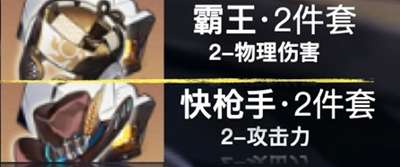 (2)霸王两件套+快枪手两件套+封印站两件套。(提高物理伤害和攻击力,增加额外攻击力)