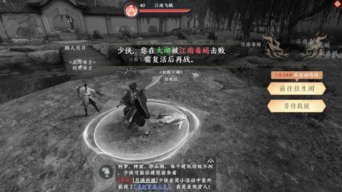 点击对话后,会提示【击退宵小】选择即可进入战斗、即可成功完成,每个时间段的门派可能不一样,所以需要侠士在开启时间参与即可。