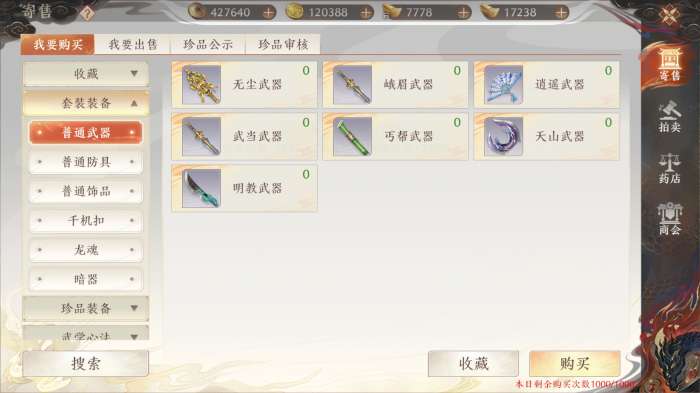 (4)还可以直接在【交易】中购买少侠所需的装备与材料