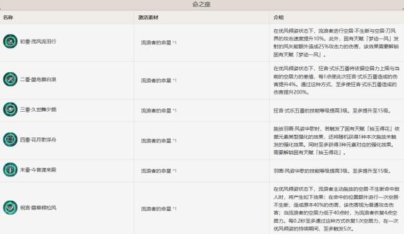 4命:在队伍中存在其他风元素角色时,流浪者的风元素伤害可以提高。这个命座加强了流浪者在队伍中的协作能力,使他能够更好地与其他风元素角色配合。