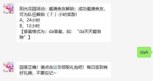 阳光花园活动:邀请亲友解锁;成功邀请亲友,可为队伍解锁( ?)小时奖励!