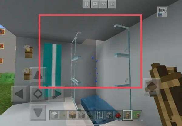 5、来到淋浴间的外面,放几个方块到墙壁上去。