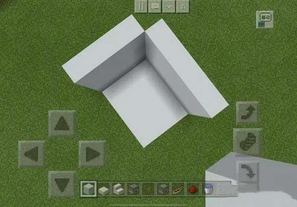 1、挖一个4*5的区域作为淋浴间,用白色混凝土来铺地和搭墙,只要做两面3格高的墙壁即可。