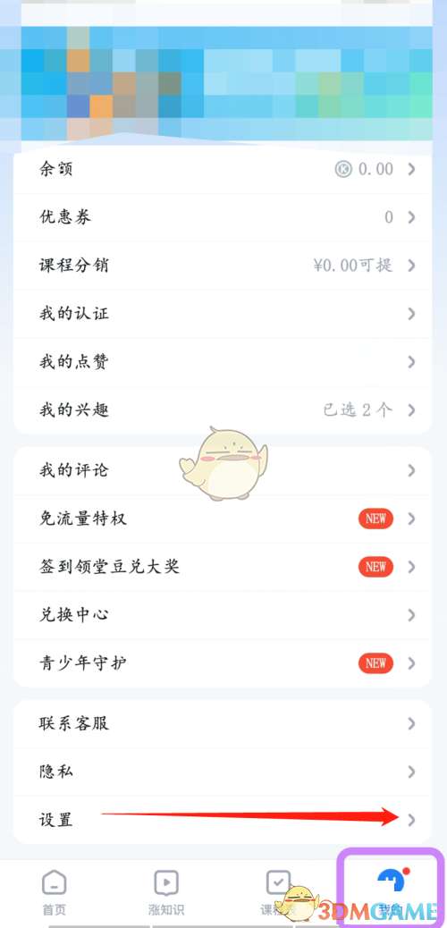 1、在【腾讯课堂】打开【我的】页面,点击【设置】选项;
