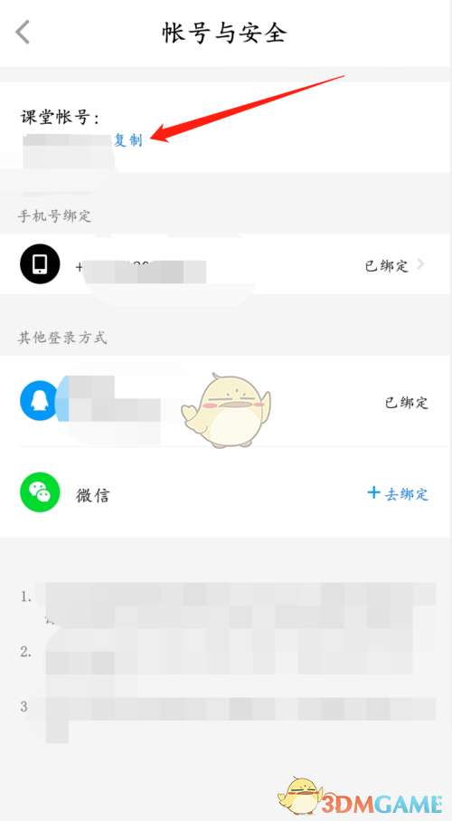 3、最后,就能看到【课堂账号】,点击【复制】即可。